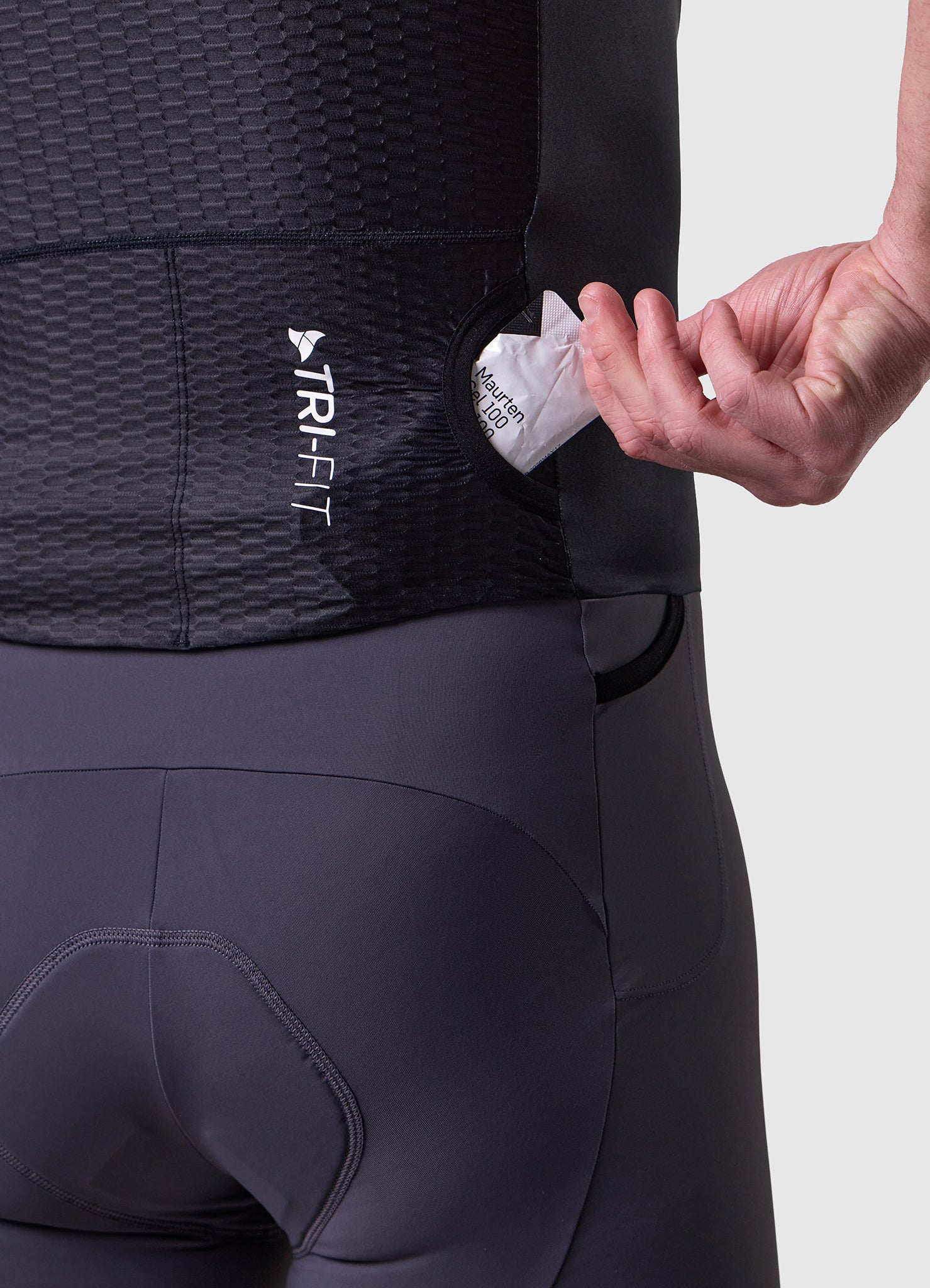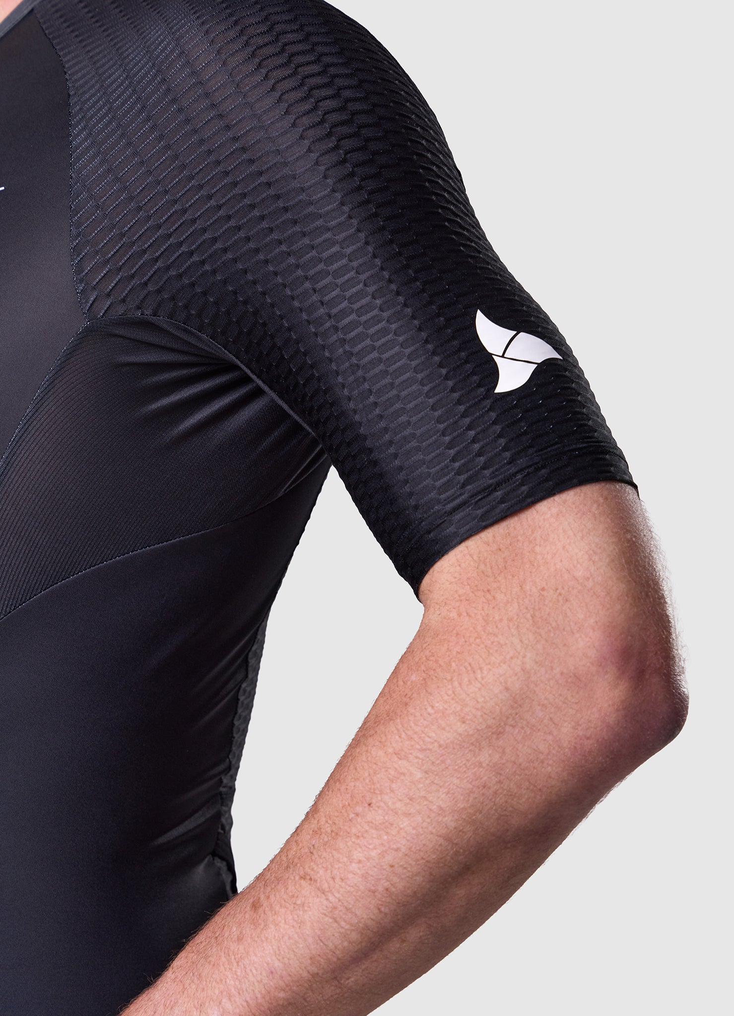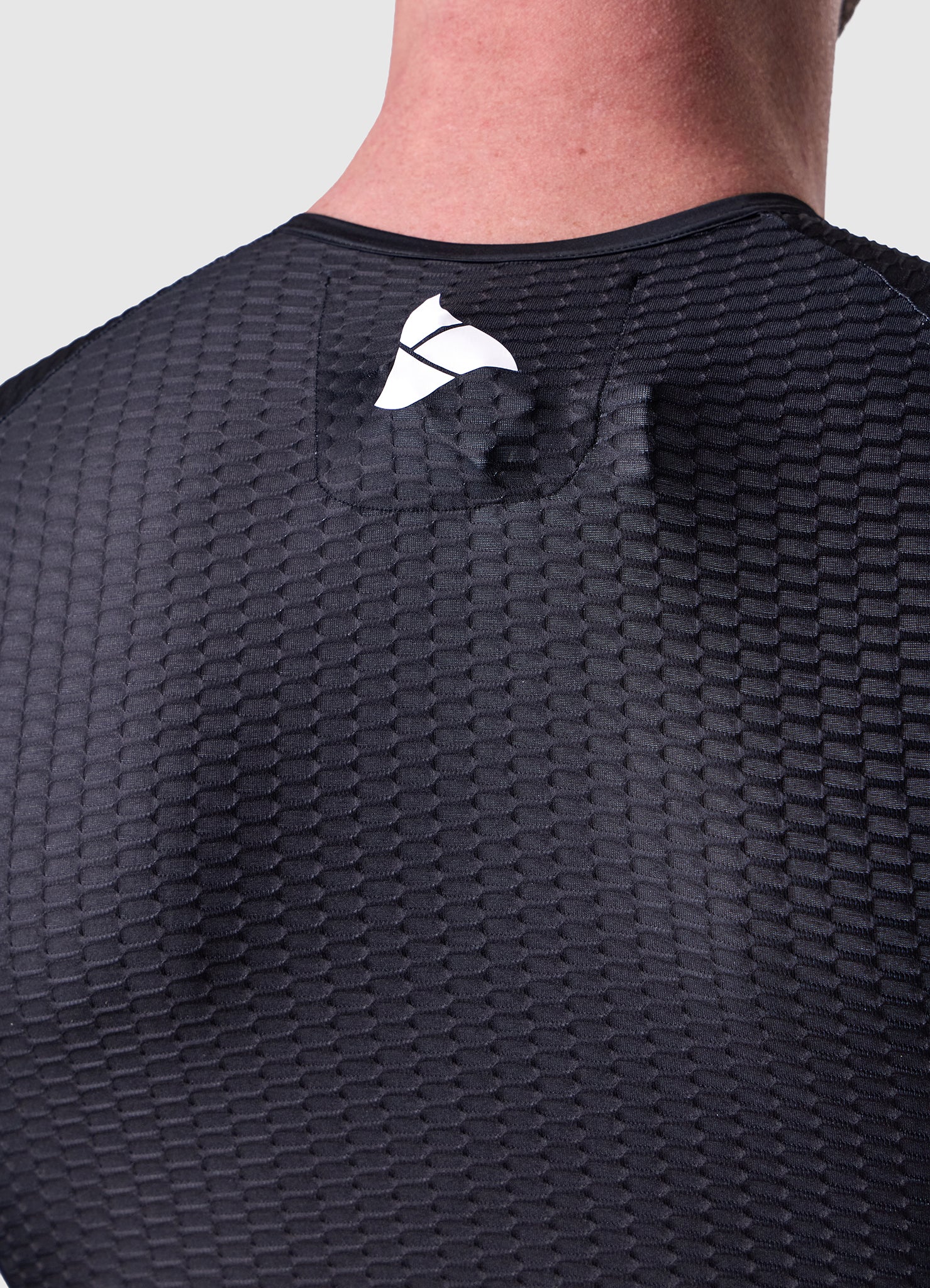 AeroWaffle fabric now adorns the back, shoulders, and arms, giving advanced aerodynamic gains, whilst also improving moisture and temperature management without compromising on the supreme comfort the TRI-FIT EVO is famed for. Couple this with new MicroMesh underarms for greater range of movement, decreased friction and again, greater moisture management and you have a cutting-edge race winner.